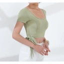 -Bagian bawahnya ada tali yang bisa diikat untuk mempercantik penampilan baju senam nya.